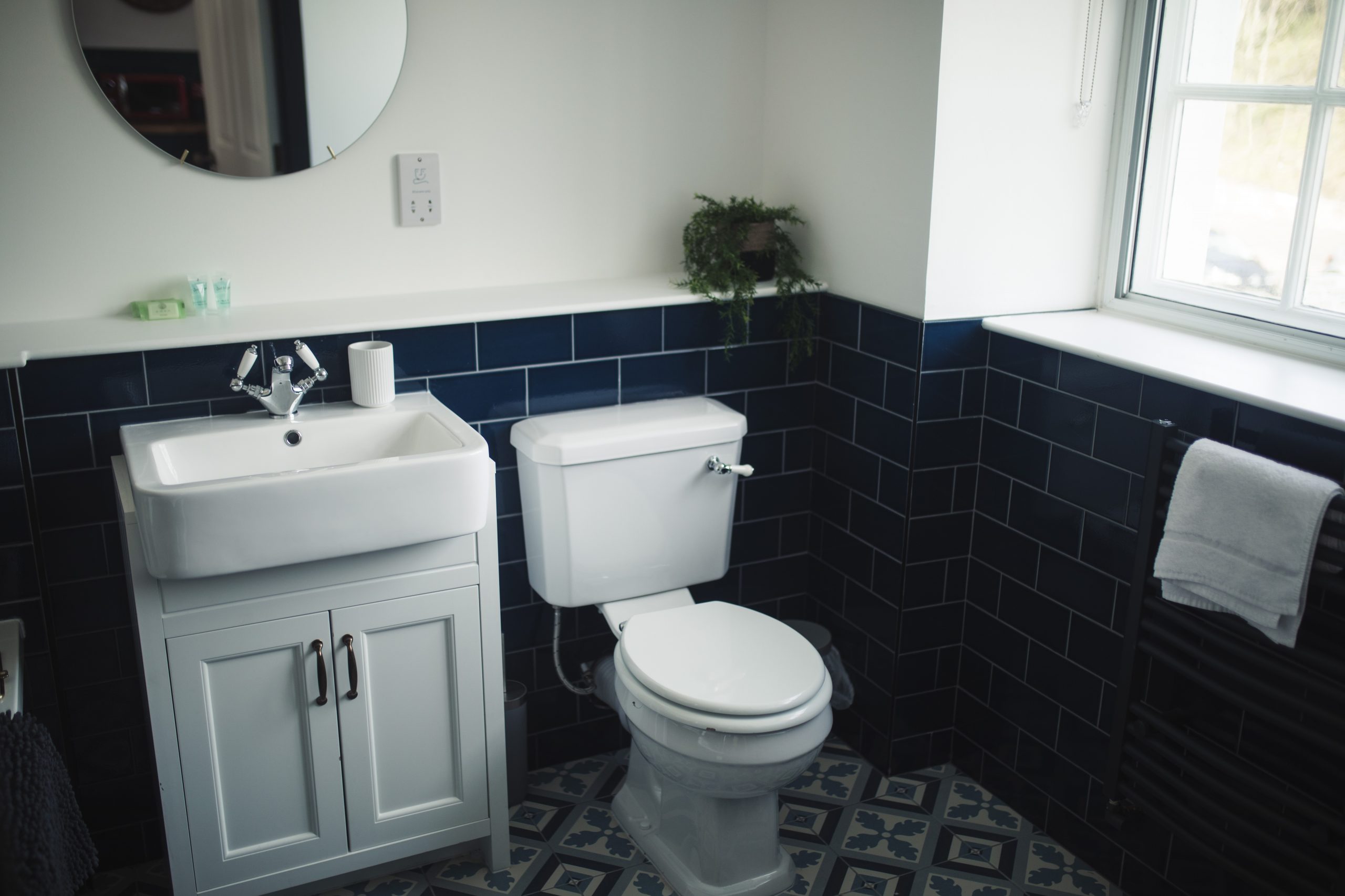 As you descend from the grand bedroom, you enter the kitchen living room level. The kitchen is modern and well-equipped with all the necessary appliances to prepare meals for family and friends. The living room is tastefully furnished and provides a comfortable space to relax and unwind. The bathroom, with its deep bath and tiled walls, adds to the elegance of the space. The stairs then lead down to the other bedroom with its ensuite, offering privacy and comfort to guests.