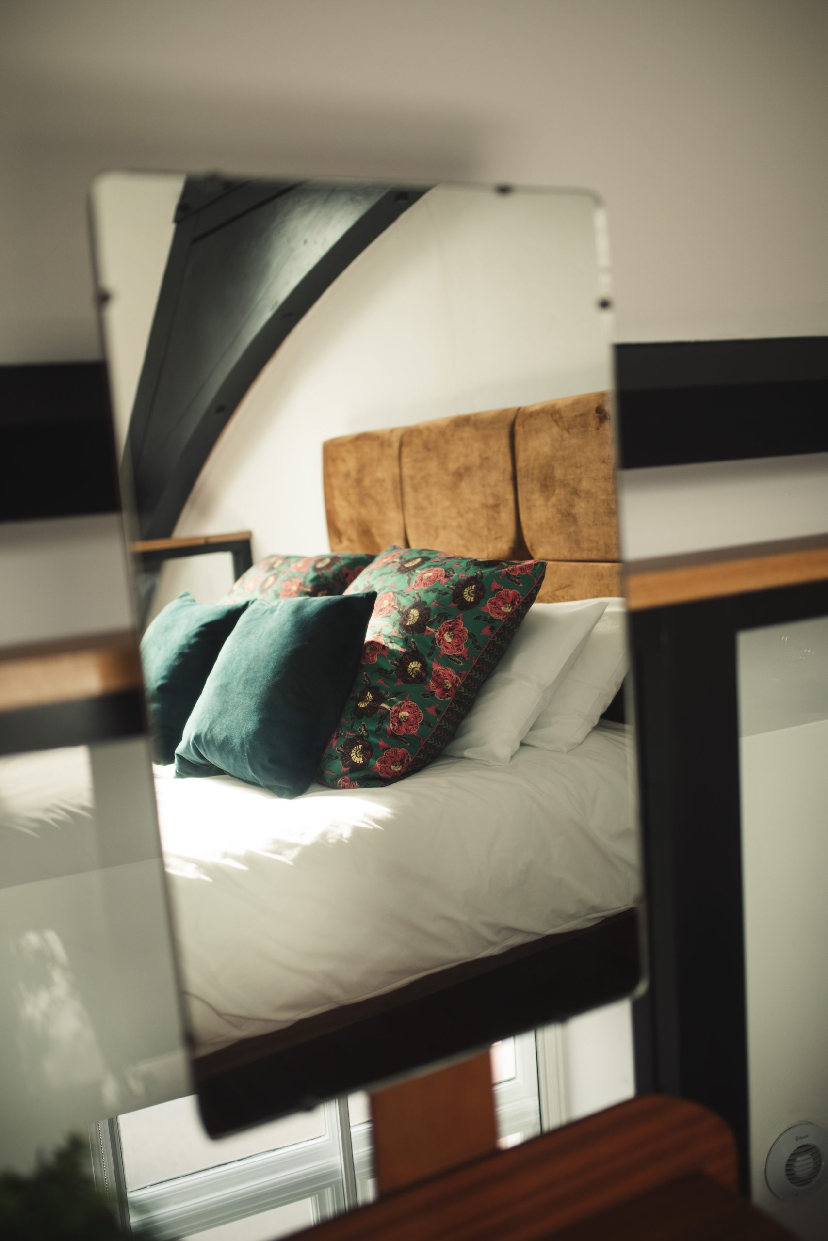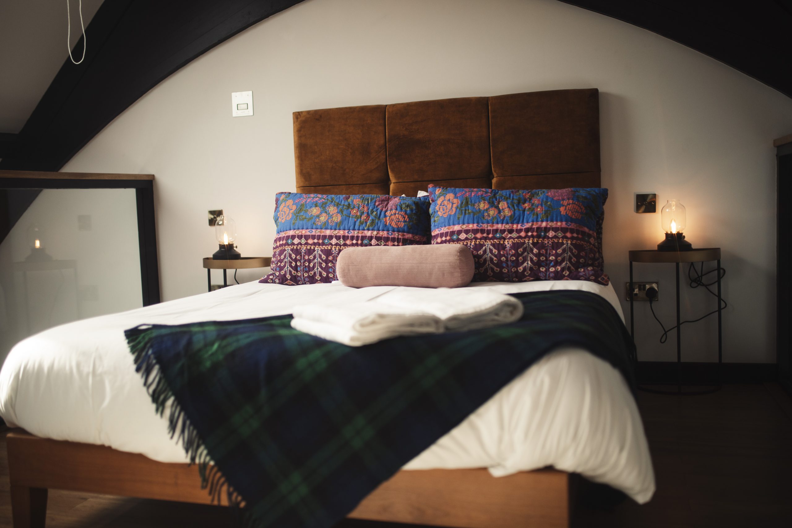The Artist Sanctuary is a stunning 2-bedroom apartment in the Slateford House 1770 development located in West Edinburgh. Spread across three floors; this self-catering apartment is designed to provide comfort, luxury, and inspiration to artists and creatives seeking a unique living space in Edinburgh. The highlight of the apartment is the truly unique and stunning bedroom built on a platform just below the grand oak beam hall roof.